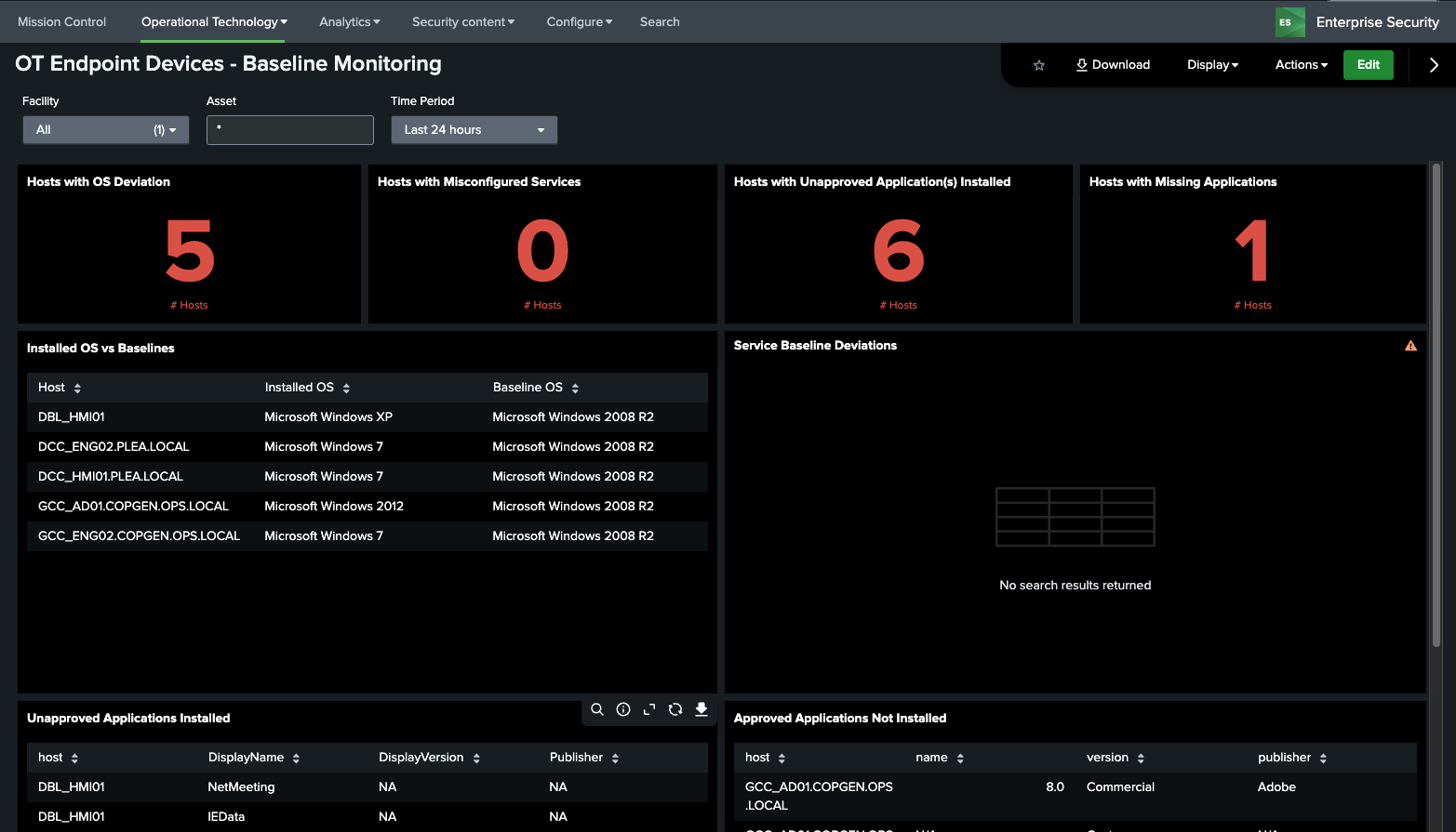 OT Endpoint Devices – Baseline Monitoring¶
